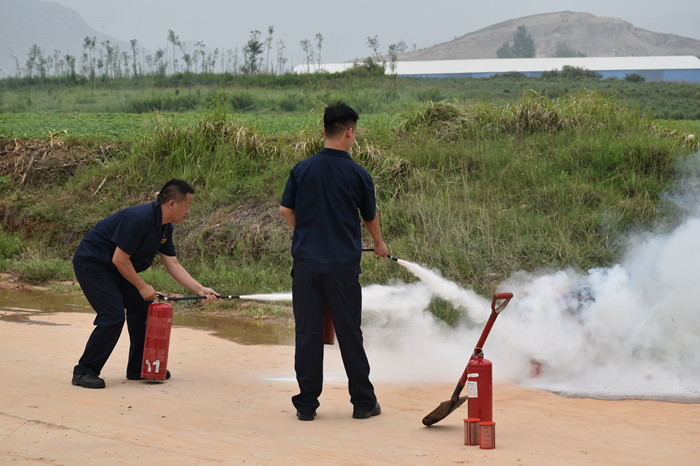 所有人員在禹州分公司民用爆炸物品倉庫區(qū)域外部指定區(qū)域,分七組進(jìn)行滅火實(shí)操。通過實(shí)操演練,所有人員均能掌握滅火器“一提二拉三對(duì)準(zhǔn)四壓”操作要領(lǐng),從而達(dá)到熟練使用滅火器和掌握撲救初期火災(zāi)的能力,實(shí)現(xiàn)理論與實(shí)踐的有效結(jié)合,達(dá)到了實(shí)操演練的目的。