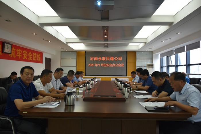 2020年9月21日,河南省永聯(lián)民爆器材股份有限公司召開了9月份安全辦公會議,公司領導班子、安委會成員、安委會辦公室成員以及魯山縣、輝縣市、偃師市、鞏義、焦作市、淅川等6家分公司負責人參加了會議。會議由公司副總經(jīng)理靳義國主持,公司董事長、總經(jīng)理劉嵩參加會議并講話。