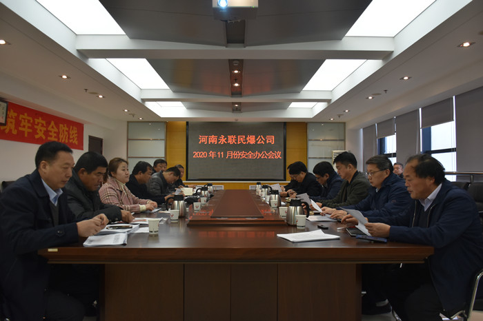 2020年11月30日,河南省永聯(lián)民爆器材股份有限公司召開了11月份安全辦公會議,公司領(lǐng)導(dǎo)班子、安委會成員、安委會辦公室成員以及宜陽縣、光山縣、寶豐縣、內(nèi)鄉(xiāng)縣、鶴壁、固始縣等6家分公司負(fù)責(zé)人參加了會議。會議由公司副總經(jīng)理靳義國主持,公司董事長、總經(jīng)理劉嵩參加會議并講話。