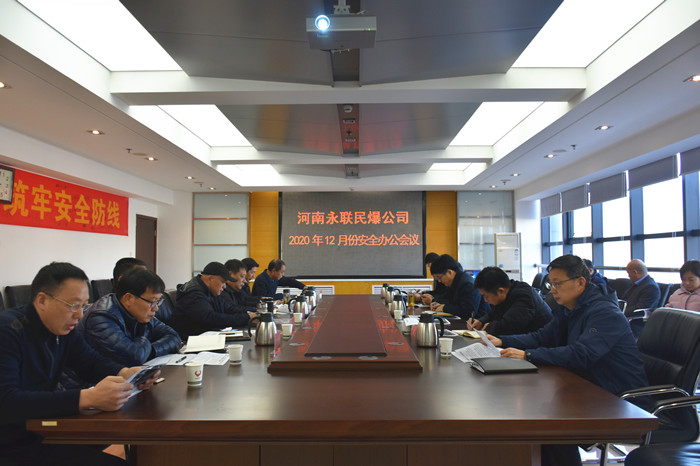 2020年12月31日,河南省永聯(lián)民爆器材股份有限公司召開了12月份安全辦公會議,公司領(lǐng)導(dǎo)班子、安委會成員、安委會辦公室成員以及洛寧縣、平頂山力源、南召縣、方城縣、鄧州市、新縣等6家分公司負(fù)責(zé)人參加了會議。會議由公司副總經(jīng)理靳義國主持,公司董事長、總經(jīng)理劉嵩參加會議并講話。
