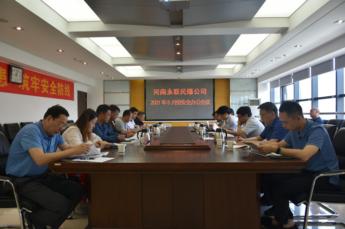 2021年5月28日,河南省永聯(lián)民爆器材股份有限公司召開了5月份安全辦公會議,公司領導班子、安委會成員、安委會辦公室成員以及宜陽縣、汝州、陜州、信陽平橋、淅川、鶴壁等6家分公司負責人參加了會議。會議由公司副總經理靳義國主持,公司董事長、總經理劉嵩參加會議并講話。