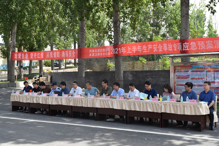 今年6月是全國第20個“安全生產(chǎn)月”,為進(jìn)一步牢固樹立以人為本、安全發(fā)展的理念,防范化解重大風(fēng)險、及時消除安全隱患、有效遏制生產(chǎn)安全事故,2021年6月18日,河南省永聯(lián)民爆器材股份有限公司與永聯(lián)衛(wèi)輝市分公司聯(lián)合開展以“落實安全責(zé)任,推動安全發(fā)展”為主題的專項應(yīng)急演練。公司特邀省委軍民融合辦二級巡視員張衛(wèi)東,民爆局局長王玉生以及新鄉(xiāng)市工信局、衛(wèi)輝市工信局等單位領(lǐng)導(dǎo)蒞臨現(xiàn)場觀摩指導(dǎo)。