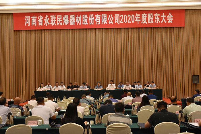 2021年6月29日,河南省永聯(lián)民爆器材股份有限公司2020年度股東大會(huì)在鄭州黃河迎賓館隆重召開。會(huì)議由所持股份1141.78萬(wàn)股(占公司工商登記總股份的99.46%)的股東或授權(quán)代理人參加,由董事長(zhǎng)劉嵩同志主持,省委軍民融合辦二級(jí)巡視員張衛(wèi)東、民爆局局長(zhǎng)王玉生應(yīng)邀出席會(huì)議。