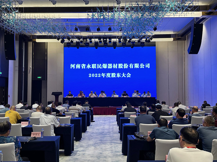 2023年6月29日,河南省永聯(lián)民爆器材股份有限公司2022年度股東大會在鄭州喆鵬酒店隆重召開。會議由所持股份1138.56萬股(占公司工商登記總股份的99.18%)的股東或授權代理人參加,由董事長劉嵩同志主持。