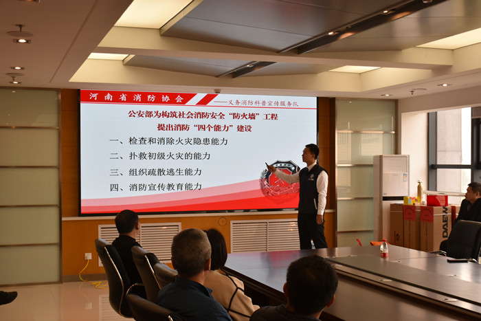 首先進行的是消防安全知識講座。本次講座,公司特邀河南省消防協(xié)會孫鴻運宣講員到公司進行消防安全知識培訓。講座中,孫宣講員從如何檢查消除安全隱患、正確報告火警、撲救初期火災和火場逃生等方面進行了生動細致的講解。此外,結合近年來真實發(fā)生的火災案例,通過一張張觸目驚心的圖片、一段段引人深思的視頻,讓大家深刻感受到火災的無情和消防知識的重要性。孫宣講員還對滅火器、滅火毯、防毒面具等常用消防器材的使用方法一一做了展示和指導。
