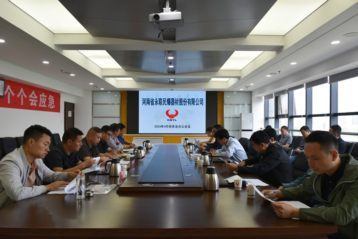 2024年4月29日,河南省永聯(lián)民爆器材股份有限公司召開了4月份安全辦公會議,公司領(lǐng)導(dǎo)班子、安委會成員、安委會辦公室成員以及南召縣、光山縣、汝州、欒川縣、偃師市、鎮(zhèn)平等6家分公司負責(zé)人參加了會議。會議由公司副總經(jīng)理靳義國主持,公司董事長、總經(jīng)理劉嵩參加會議并講話。